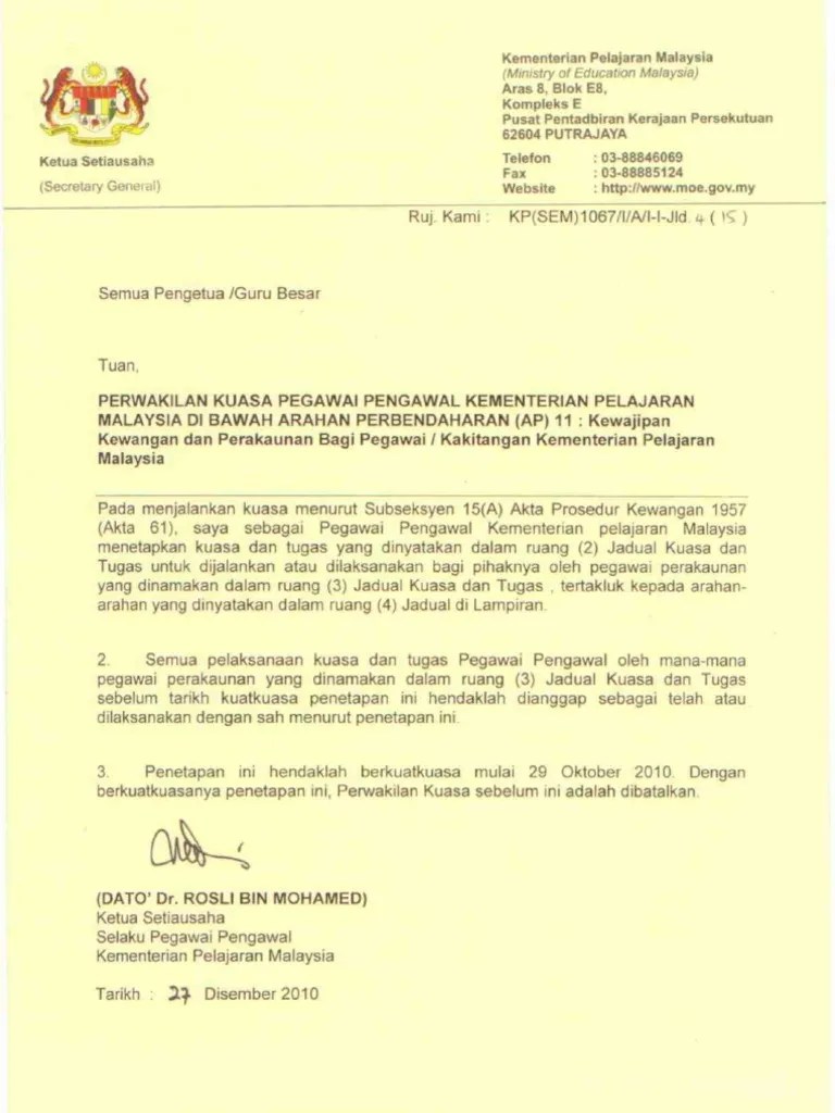 Contoh surat penurunan kuasa eperolehan. Contoh surat penurunan kuasa ap11. Contoh surat penurunan kuasa kewangan sekolah. Seksyen perakaunan kumpulan wang sekolah (sp kwas) · ▻khas. Contoh surat penurunan kuasa ap11 spanm bil 6 tahun 2018 penetapan kuasa dan tugas pegawai pengawal ap11 contoh surat kuasa yang benar dan . Contoh surat penurunan kuasa ap11.
